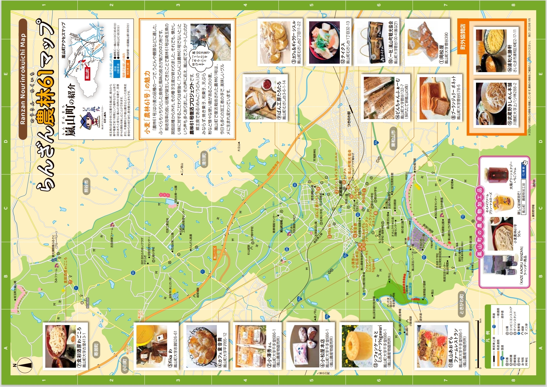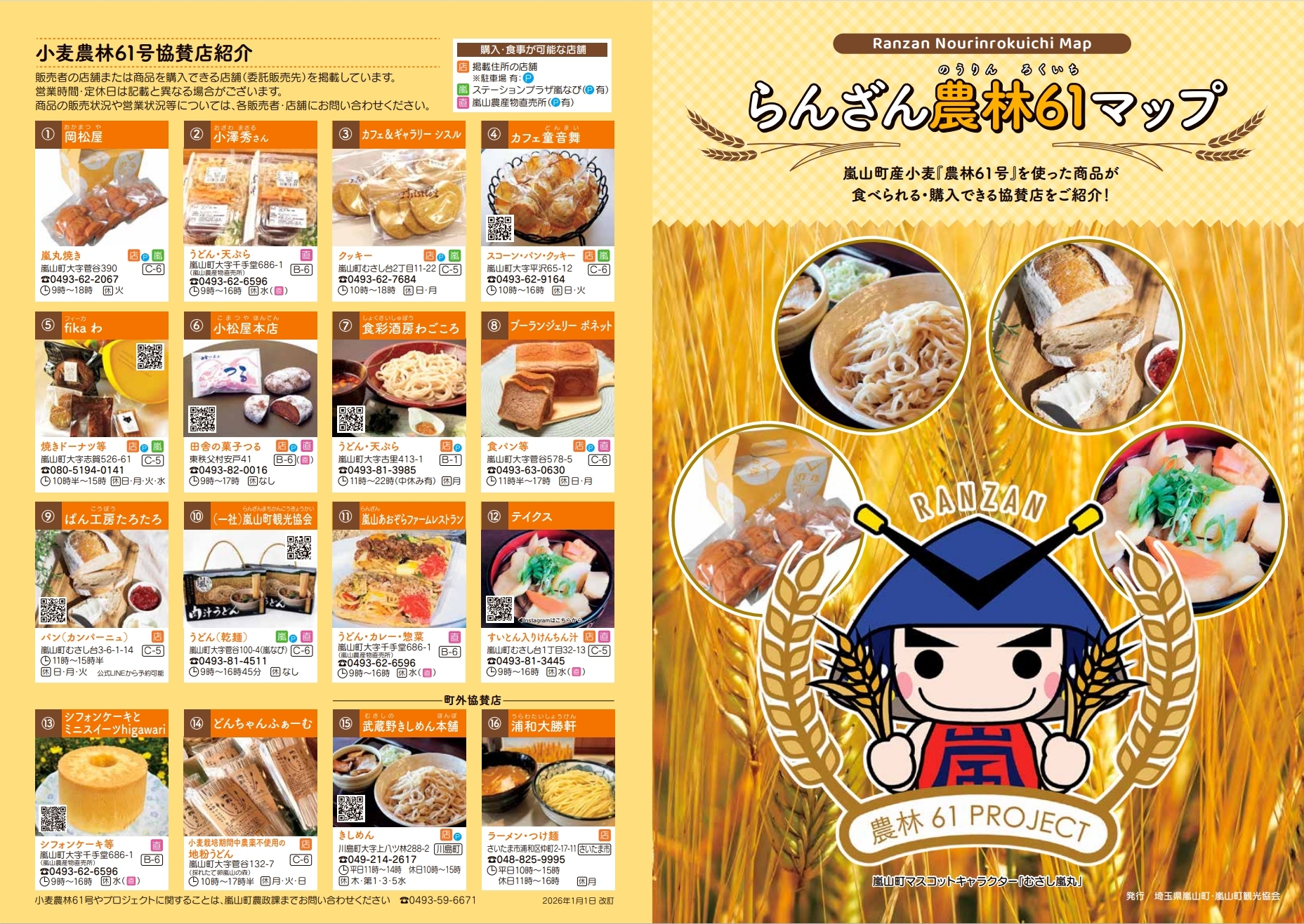 らんざん農林61マップとは、嵐山町産小麦農林61号を使った商品を提供している協賛店と、その商品を掲載したマップです。
