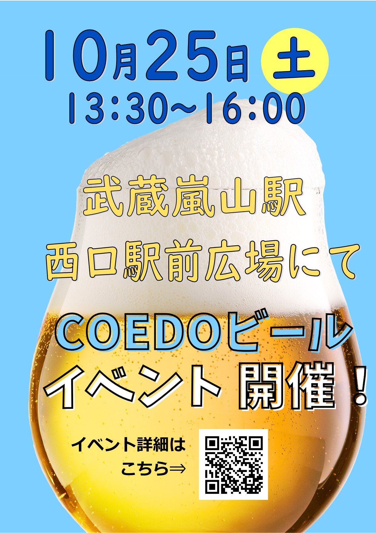 【10月25日】武蔵嵐山駅西口でCOEDOビールイベントを開催します