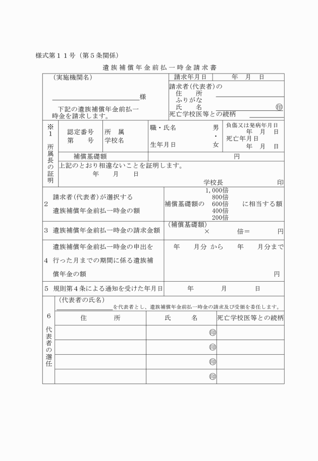 (11) 遺族補償年金前払一時金請求書(第5条関係) | |