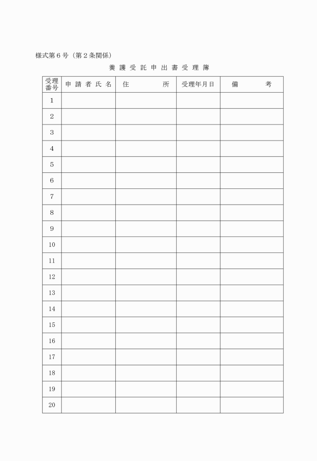 第5条 施行規則第1条の6の規定による申出は、養護受託申出書(様式第12号)によらなければならない。