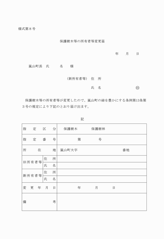 (3) 第3号の規定により届け出る場合は、保護樹木等の所有者等変更届(様式第8号)とする。