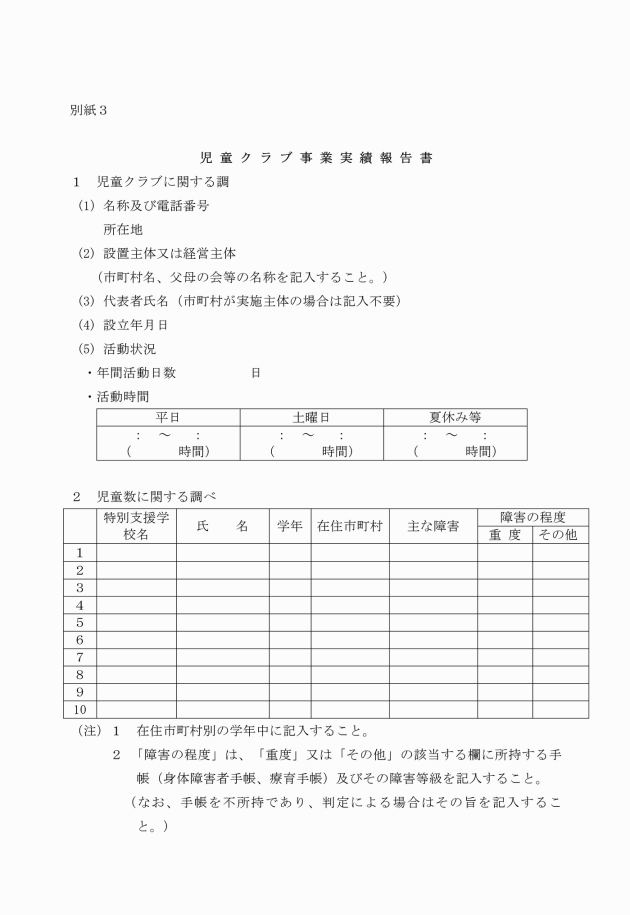 (2) 児童クラブ 県内の特別支援学校等に通学する障害児を、放課後等一定時間組織的に指導し、もって障害児の集団生活と健全育成の場を確保することを目的として運営されるものであって、次に掲げる要件のいずれも満たすものをいう。
