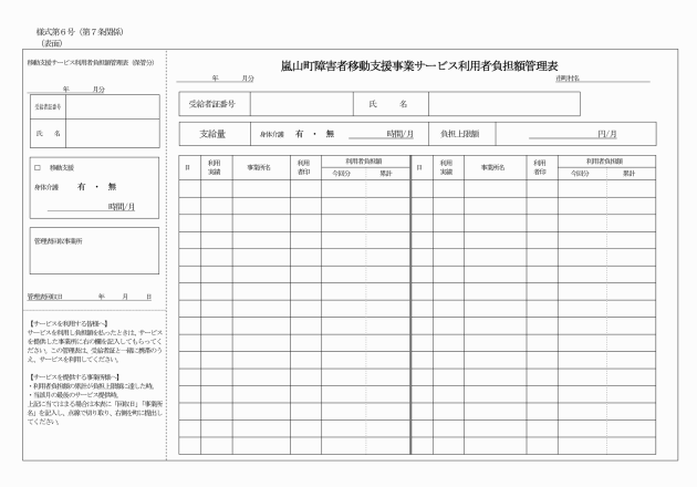 第7条 利用対象者は、登録団体を利用しようとするときは、嵐山町障害者移動支援事業支給申請書(様式第3号)を町長に提出し、移動支援事業費を支給する旨の決定を受けなければならない。