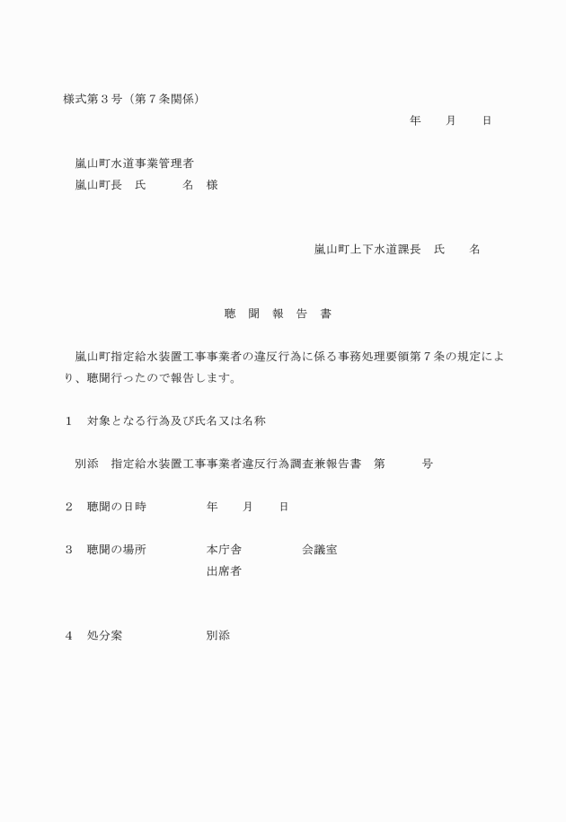 3 聴聞の実施に当たっては、聴聞通知書(様式第2号)により通知する。