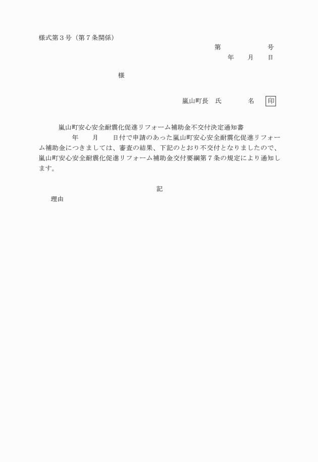 ○嵐山町安心安全耐震化促進リフォーム補助金交付要綱