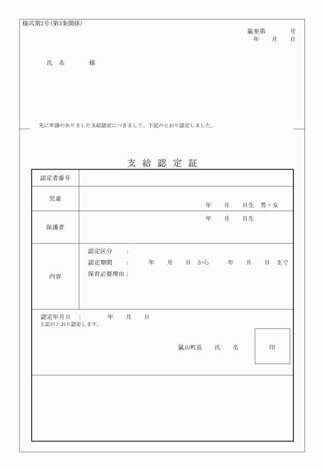 第3条 法第20条第4項の規定による通知は、支給認定証(様式第2号)により行うものとする。