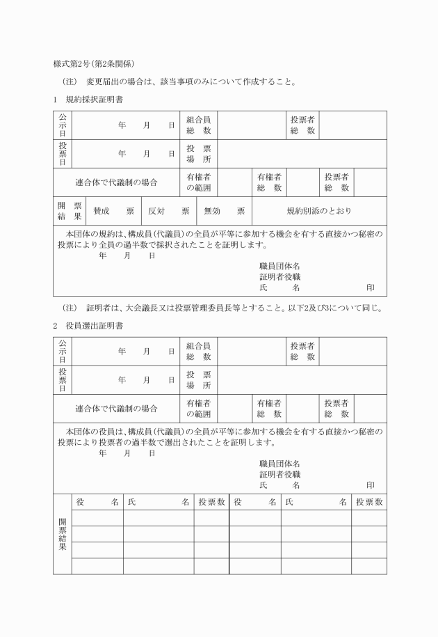 2 職員団体が条例第2条第2項の規定により申請書に添付し、又は条例第4条第3項の規定により届出書に添付する書類は、様式第2号に準じて作成した証明書とする。
