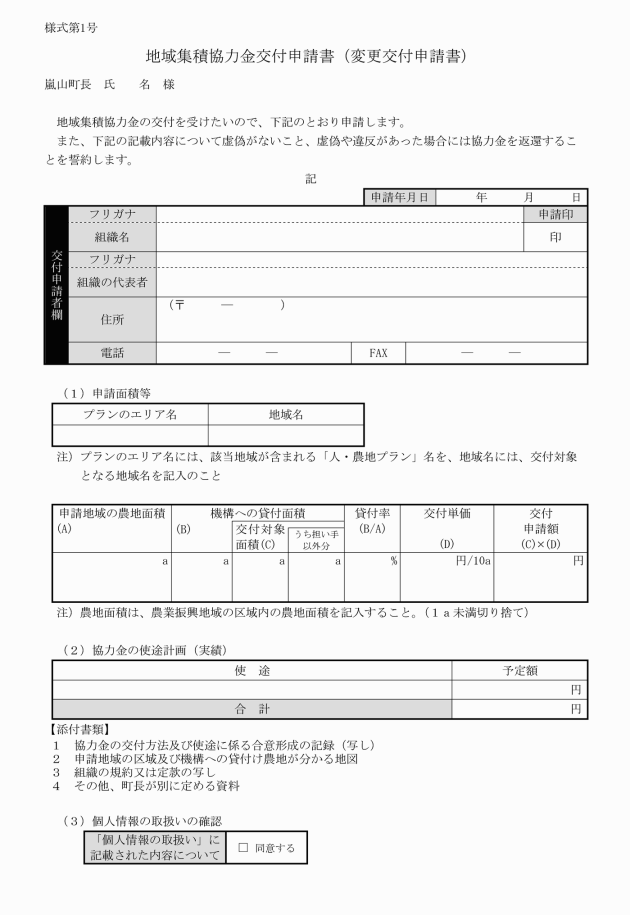 イ 耕作者集積協力金変更交付申請書(様式第5号:交付対象農地が貸借地の場合の変更申請書)