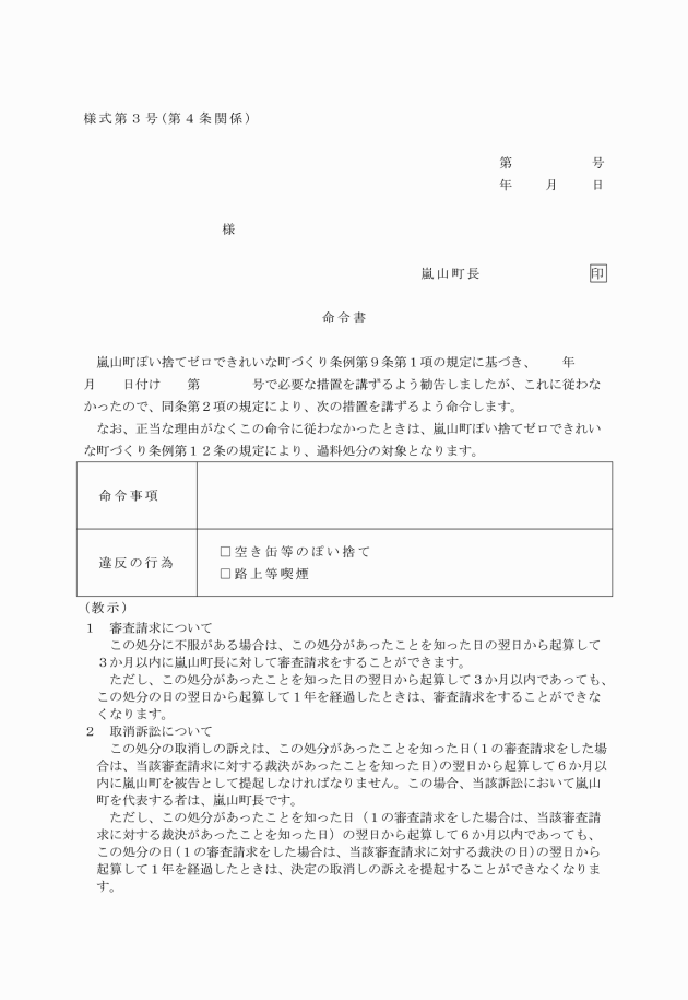 ○嵐山町ぽい捨てゼロできれいな町づくり条例施行規則