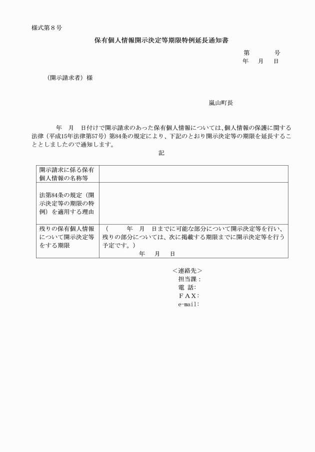 (8) 法第84条の書面 様式第8号の保有個人情報開示決定等期限特例延長通知書