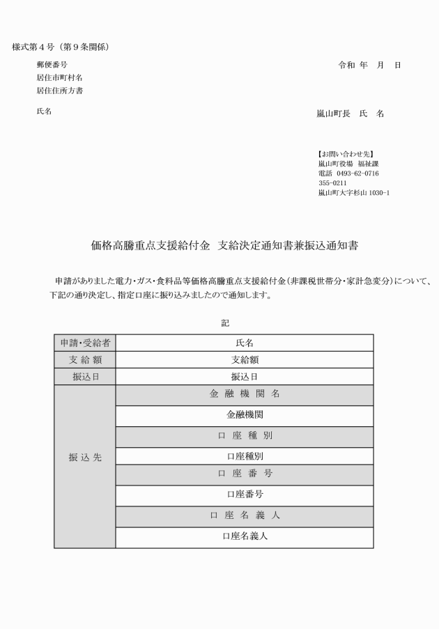 ○令和5年度嵐山町電力・ガス・食料品等価格高騰重点支援給付金支給事務実施要綱